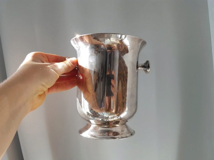 For those who love luxury in everything, we recommend to pay attention to silverware. Such buckets are made of high quality metal. The product can be made in the style of an ordinary bucket or a vase. Moreover, if you intend to present such an accessory as a gift, then such an item can be easily engraved.