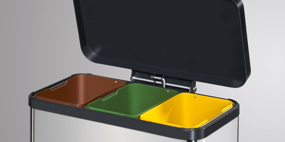 One of the latest innovations is a pedal bin with several compartments. Some manufacturers did not stay aside from the requests of anti-pollution activists and began to produce sorting containers with several departments for different types of garbage to separate waste types that can be recycled (metal objects, glass, fabrics and paper products) from unsuitable.