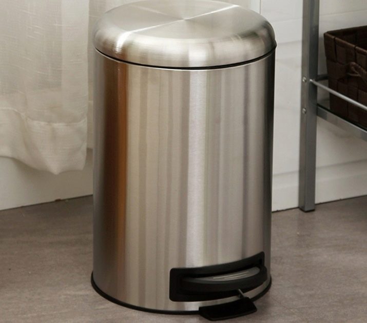 Such buckets make from plastic or from metal. The latter option is preferable to acquire because of its excellent wear resistance and spectacular appearance. Stainless steel containers are not afraid of the negative effects of moisture and retain their original appearance for a long period of time. There are buckets with a matte surface and chrome. Metal baskets fit perfectly into the home interior and easy to use.