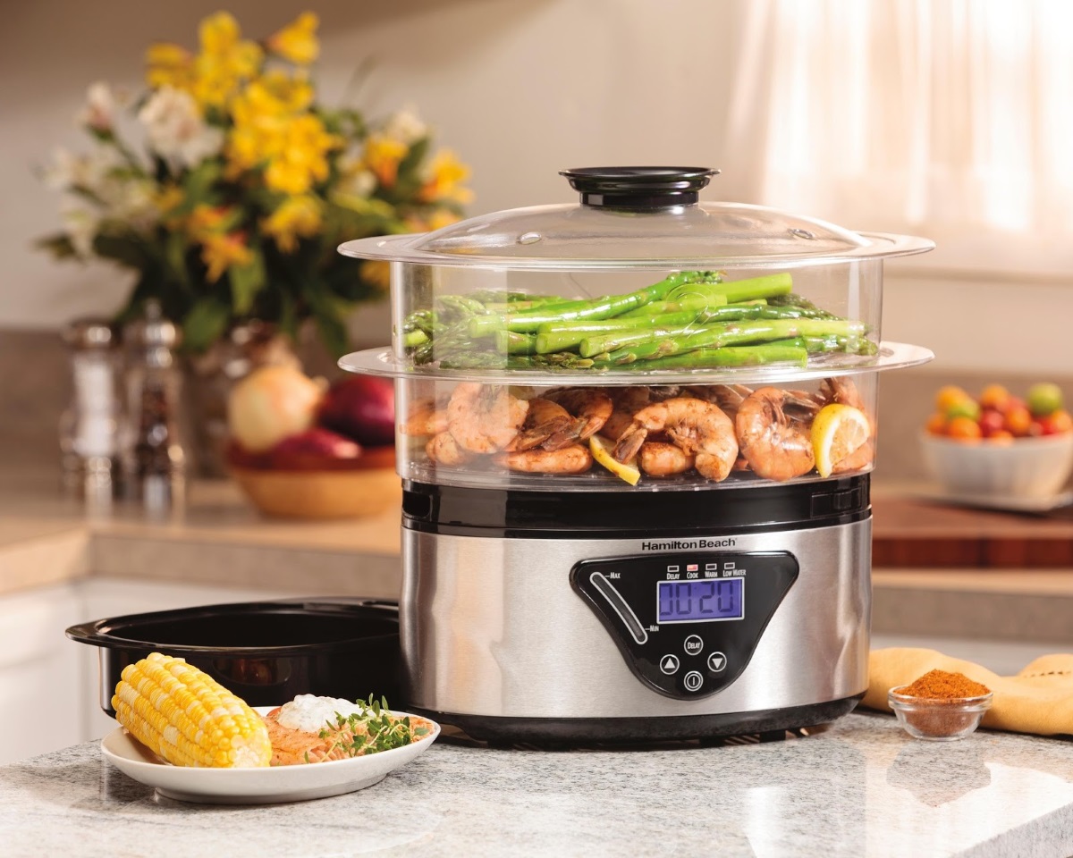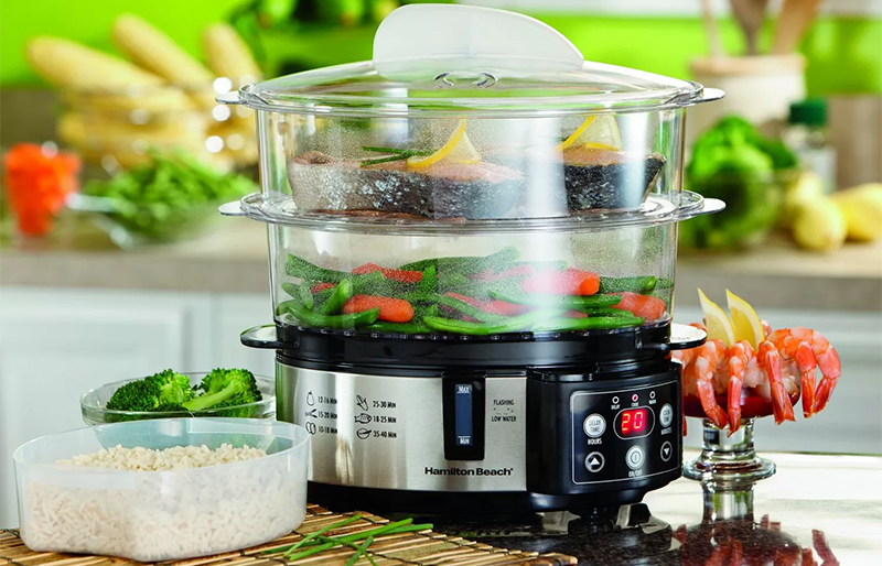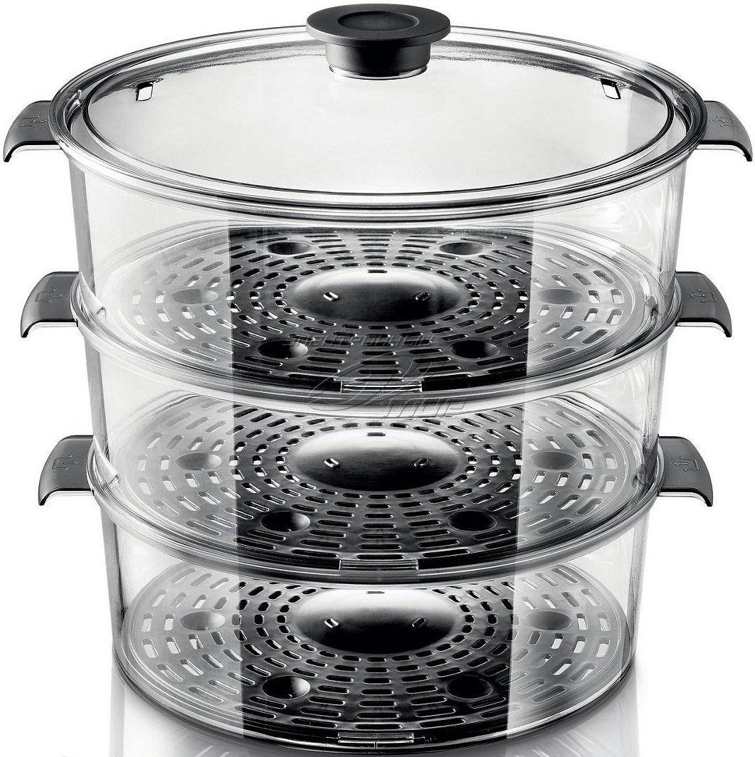 - A three-tier and four-tier steam cooker is a volumetric version of the device for large families.