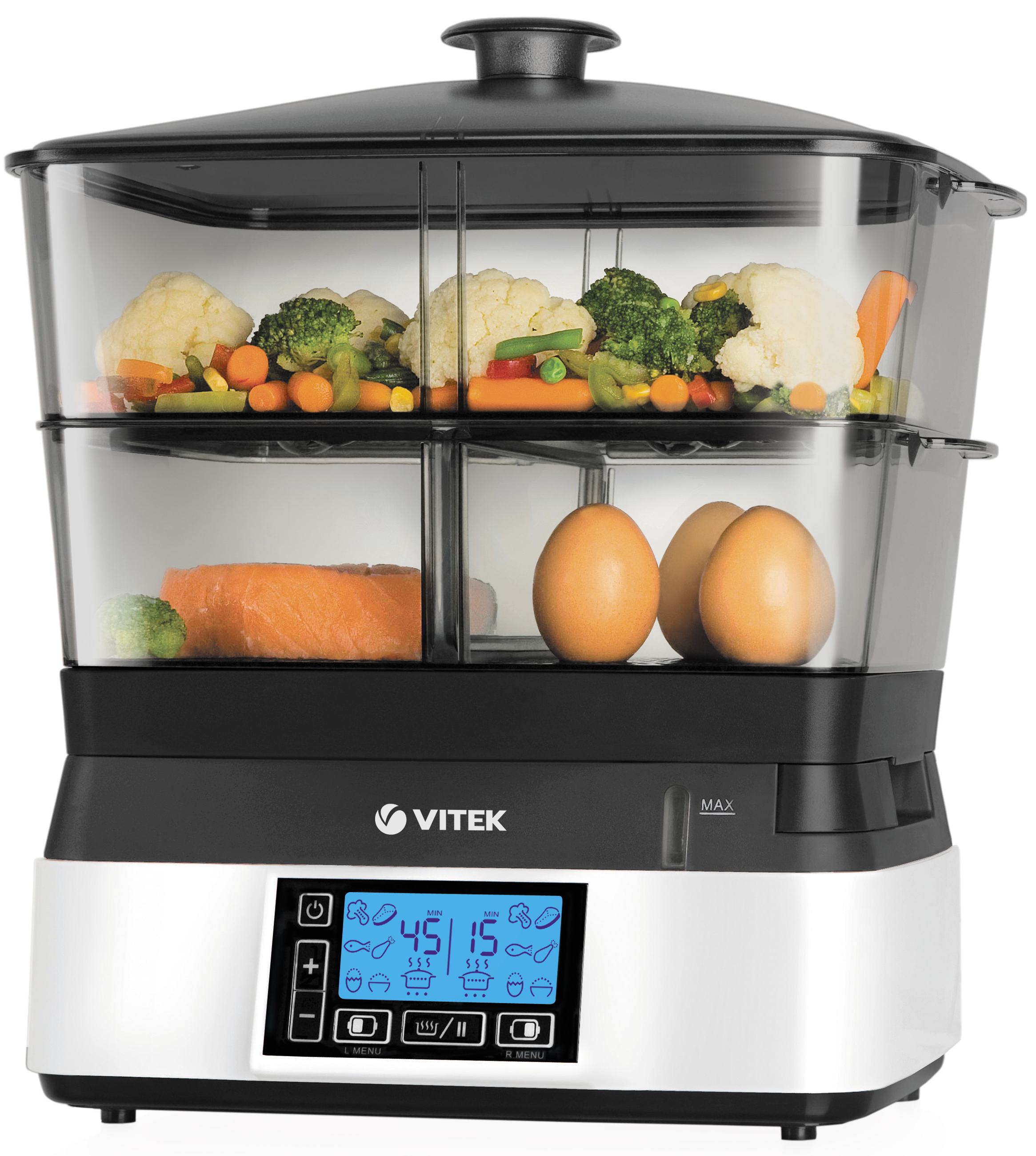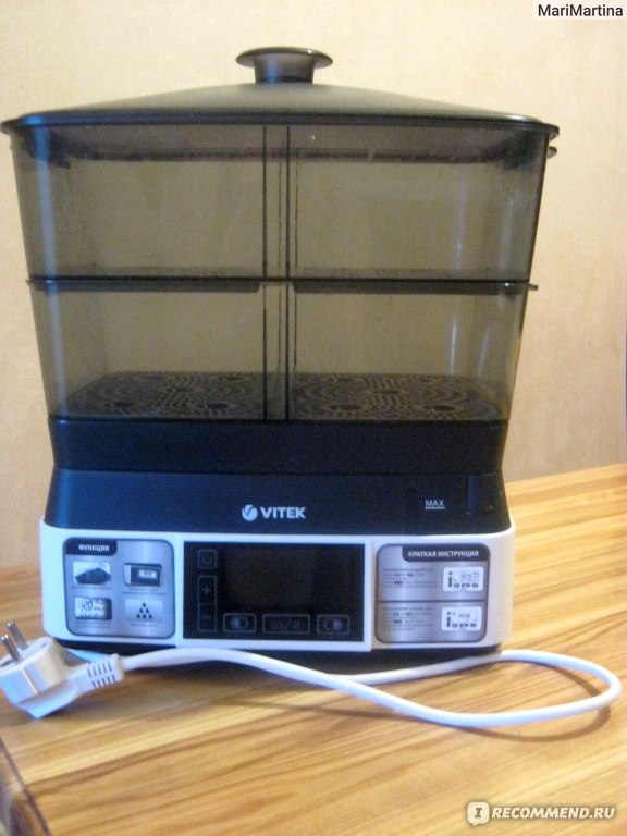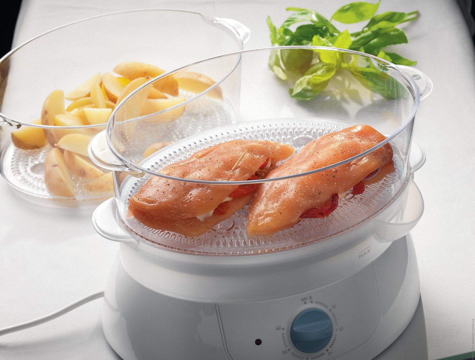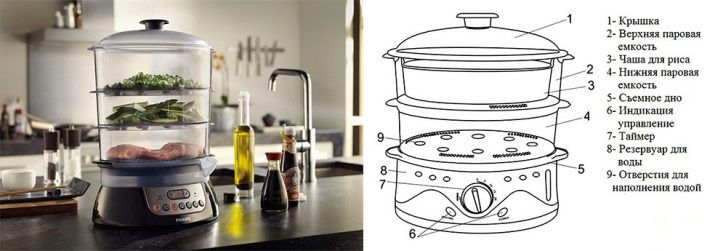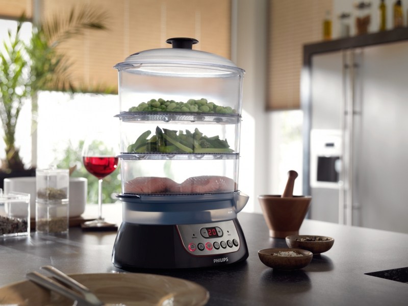 - As in any kitchen electronic appliance, in a double boiler, several cooking modes with set timers and steam temperature must initially be configured. This means that you do not have to monitor the operation of the device - just pick up already prepared healthy food.