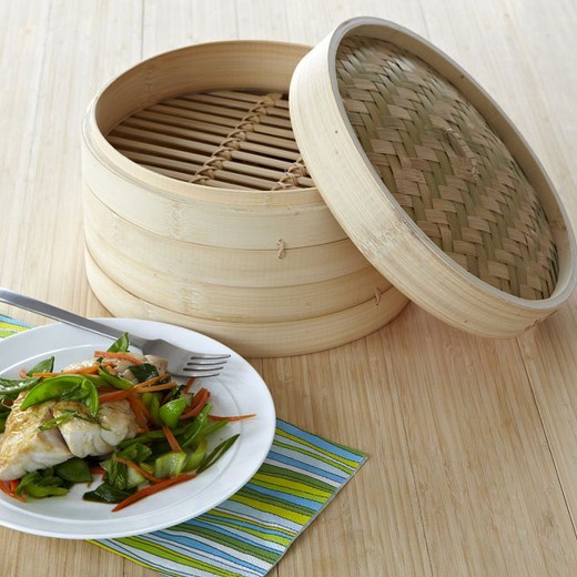 Bamboo steamer is considered an environmentally friendly option that does not cause any harm to the body. In addition, bamboo is incredibly resistant to high temperatures, which does not allow it to deform or spoil food.Some housewives noticed that the food after cooking on the bamboo double boiler gives a pleasant vegetable flavor.