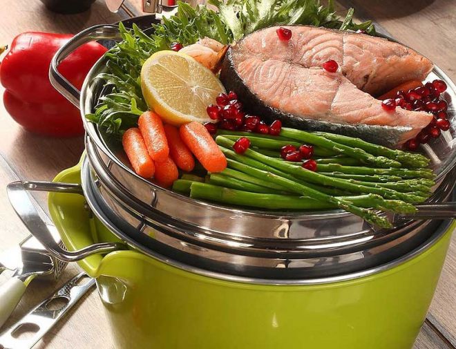 With this method of cooking does not require any vegetable oils - steam does all the work on their own. The result is healthy, low-calorie, and low-fat foods.