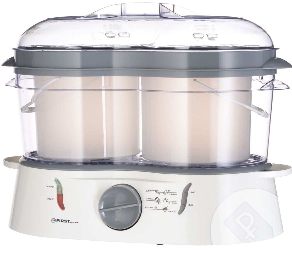 - A two-tier steamer with 2 bowls is suitable for cooking medium-sized meat, soups and cereals.