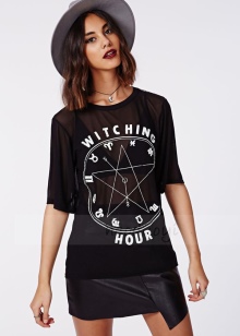 You can wear a regular T-shirt or tunic with skinny jeans and complement this simple look with a miniature decoration.