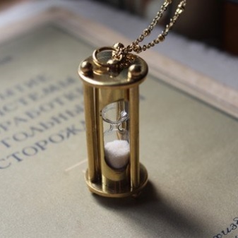 They are also in some cases decorated as a pendant. In them, as in the real hourglass, inside there is sand, which for a certain period of time is poured when turning. The sand can be shiny or colored. This will give the pendant refinement.
