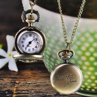 The watches in the form of a pendant of gold or gold-plated look expensive and stylish. Silver product looks no less impressive. Available in a sophisticated version, decorated with inlaid precious stones.