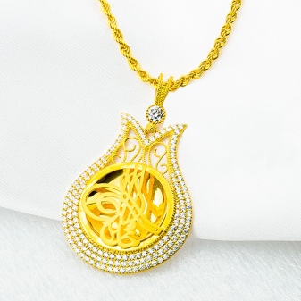 Jewelry made of gold are intended exclusively for the fair sex. Muslim men usually do not wear jewelry of this metal. The jewels of Islamic women are a sign of family affluence. Costly jewelry from his wife are an indicator of her husband's status. Therefore, Islamic pendants have a rich design and massive.