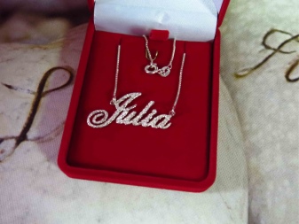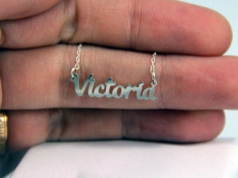Now pendants in the form of a name are very popular, and occupy an honorable first place among gold jewelry. That's because a wide choice allows you to purchase the product to your taste, and if it does not appear in the brand's line-up, then the first letter of the name can be purchased.