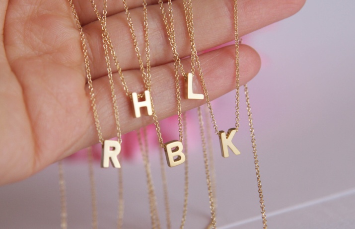 And also to get a nominal letter, you can the owner of a long name. In full performance, long names look ugly and massively, and a fragile girl is unlikely to fit. But the elegant first letter will look original on a thin neck.