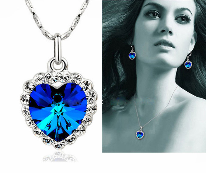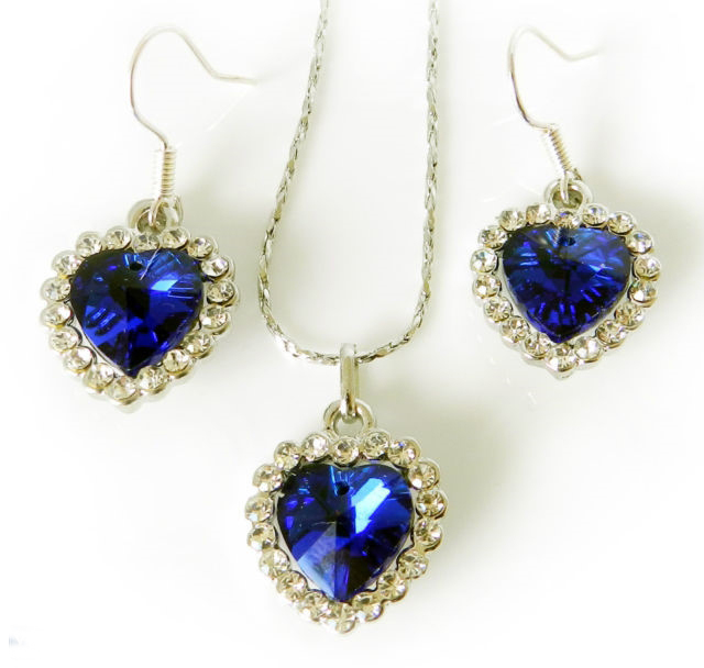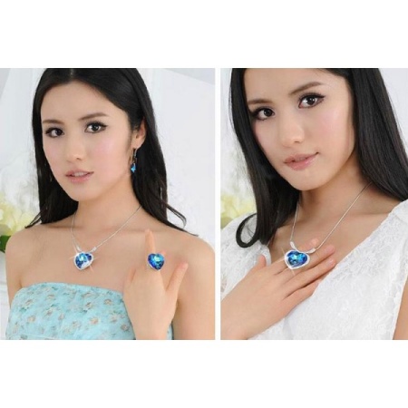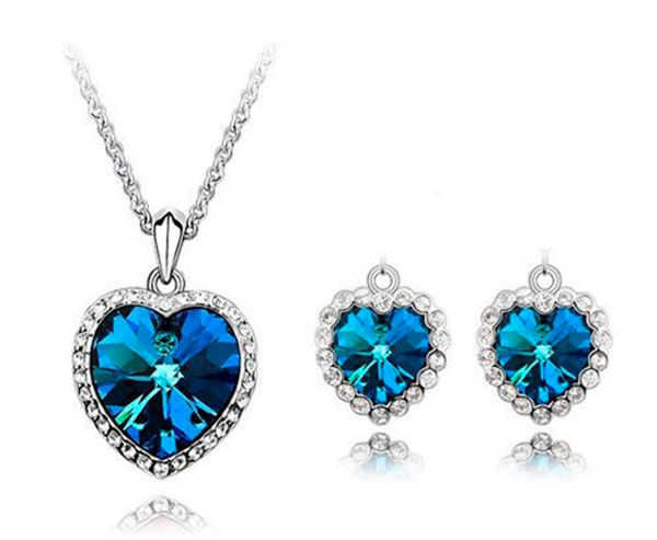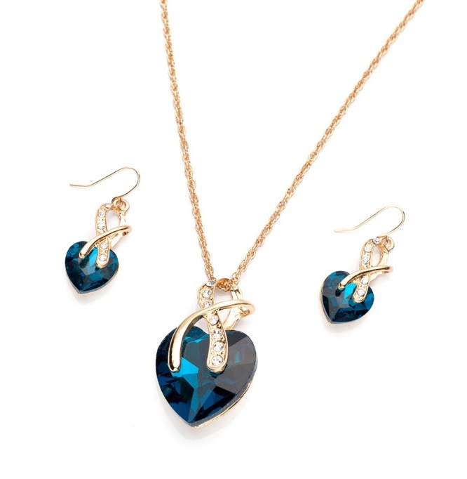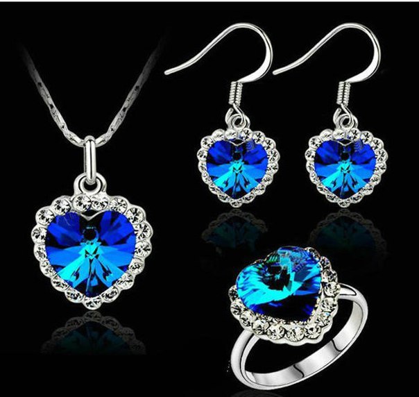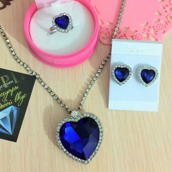 Today you can purchase the “Heart of the Ocean” kit. They look feminine and luxurious. In these sets, the ring and earrings are ideally combined with the pendant and are equipped with stones of a smaller or similar size.