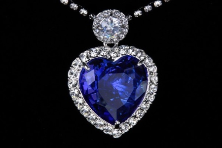 Film director James Cameron chose a romantic heart-shaped cut for the stone. Such a spectacular appearance could not attract the special attention of fashionistas. The original product is made of cheap tanzanite, which James liked more than other gems.