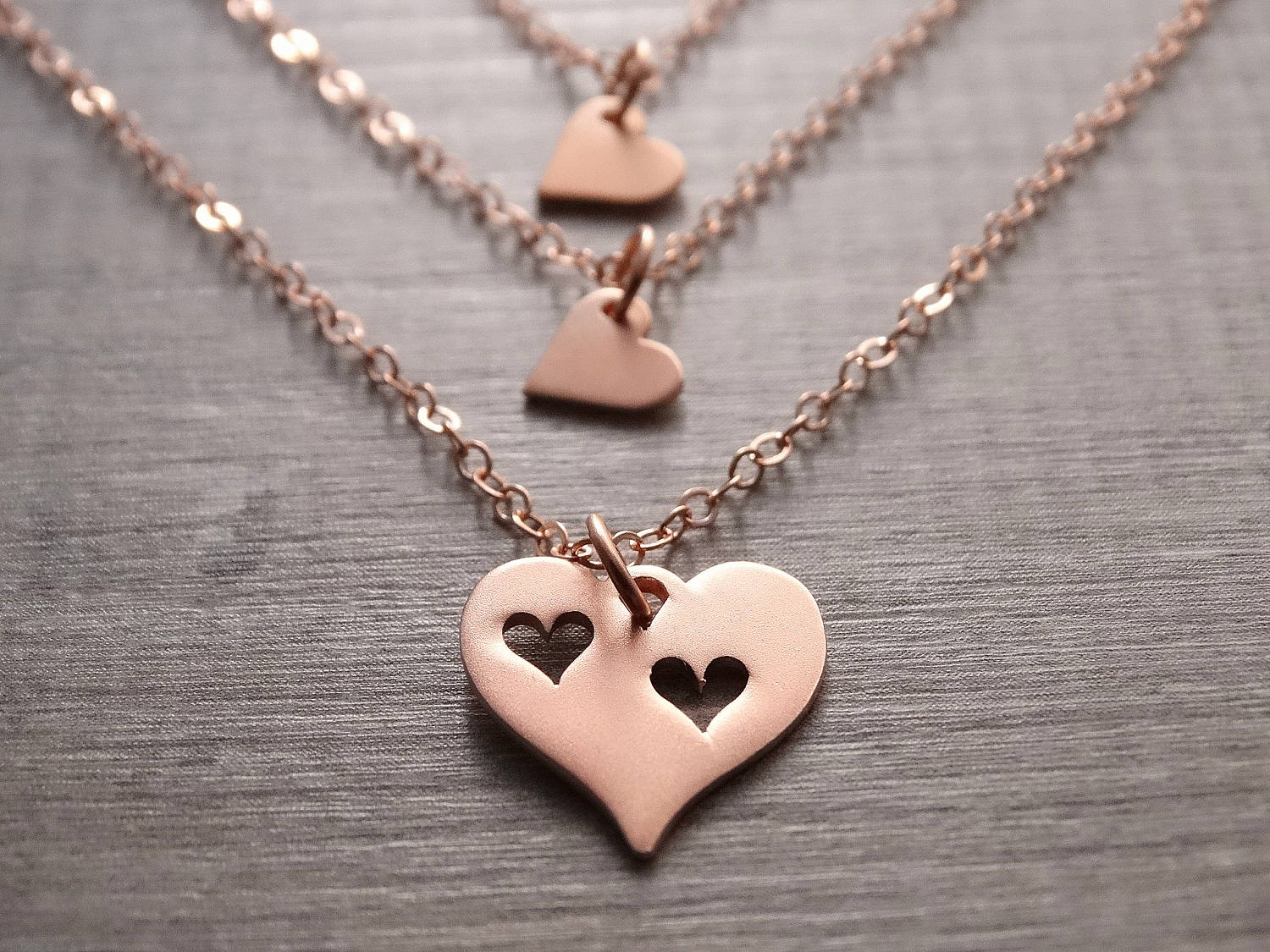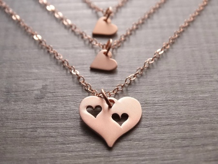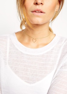 Today it is fashionable to wear thin chains in several rows, each of them can have a pendant-heart. It is important that they are the same, then the decorations will look like a whole ensemble.