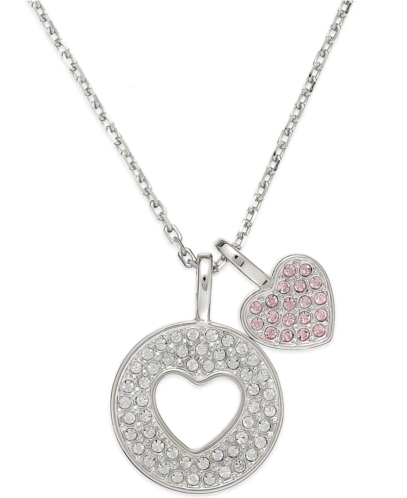 Pendant in the shape of a heart, studded with Swarovski crystals looks very impressive. It has an attractive appearance, beautifully shines and shimmers in the rays of light. They look great framed in gold or silver.