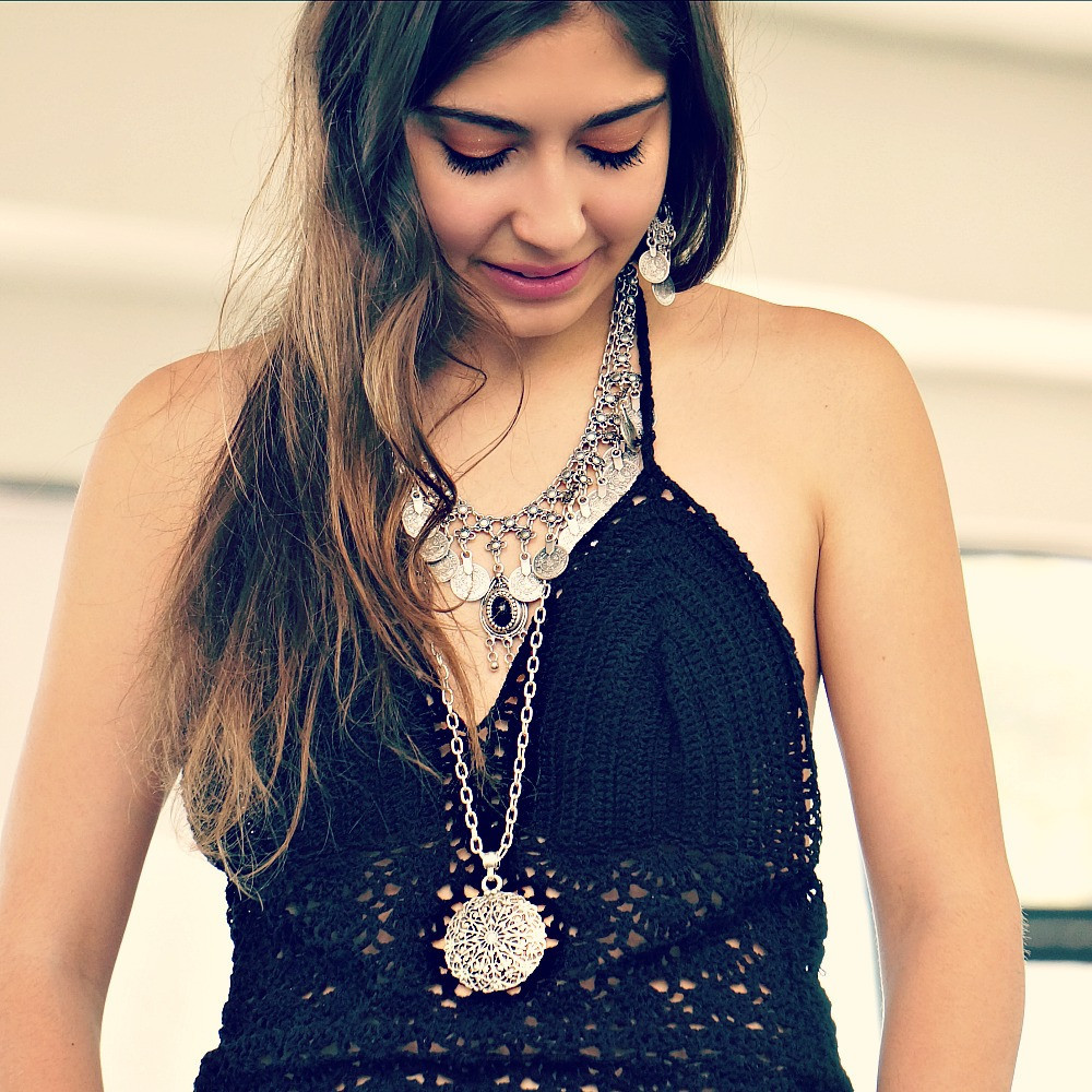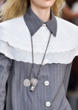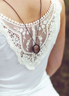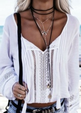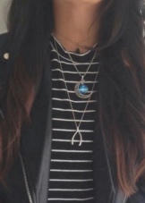 Remember, the thinner the fabric, the smaller the pendant should be, and the sleeker the chain. This applies, for example, chiffon tunic or high-cut silk top.