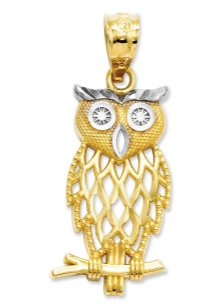 Gold - one of the most popular materials in the manufacture of owls. These pendants shimmer beautifully in the sun and are ready to fit even into a business wardrobe.