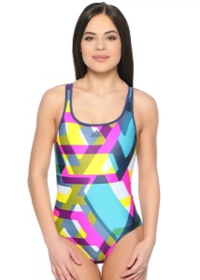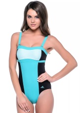 Adidas offers models of a laconic cut with a high neck, wide neckline and open back. These types of swimsuits are usually monochrome and only allow inscriptions with the name of the company in contrasting colors.