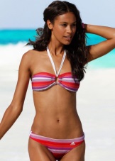 Bathing suits, which are designed for recreation, have a different purpose. If you go to the beach, it is best to use a separate swimsuit as open as possible. The most suitable option for lovers of tanning is a gang whose bodice looks like a wide ribbon on the chest. There are a variety of bikinis, which, with all minimalism, firmly hold on to their owners and do not fall down when diving into the water.