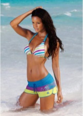 Of course, the above models look best on girls with a slim physique. If the body has imperfections, then a more suitable option would be swimsuits with high panties that cover the belly and problem areas on the sides. For overweight ladies, the best solution would be to combine suits with slimming inserts. Alternatively, a swimsuit may have a sewn corset, which will make the figure more elegant. If it is complemented by vertical stripes, then its owner will look even slimmer.