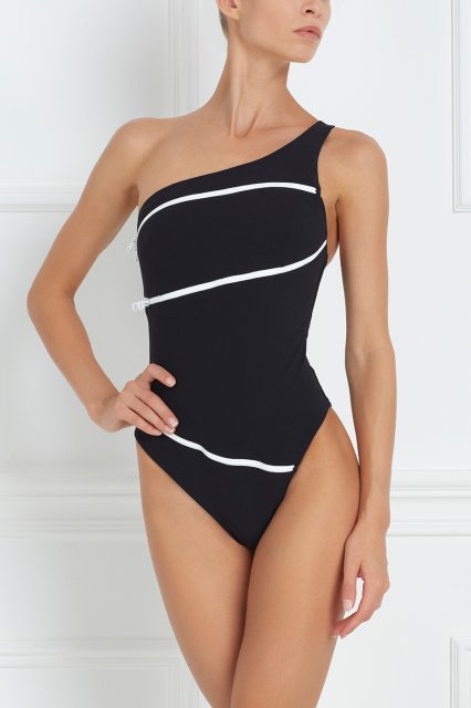 The most recognizable model from Agent Provocateur. This is a one-piece bandage swimsuit with asymmetrical cut-outs in the abdomen and sides and a strap on one shoulder.