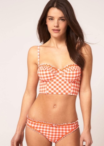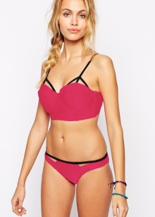 String together the bustier will look amazing on a lady with any chest size and with any skin tone. As a rule, these original and attractive models are made of high quality materials that do not cause irritation when in contact with the skin. The one-piece swimsuit is able to effectively emphasize the dignity of the figure and hide many flaws.