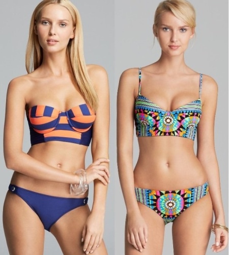 Products of fuchsia, blue, turquoise, yellow and red are very popular. Attractive bustier with a variety of prints.
