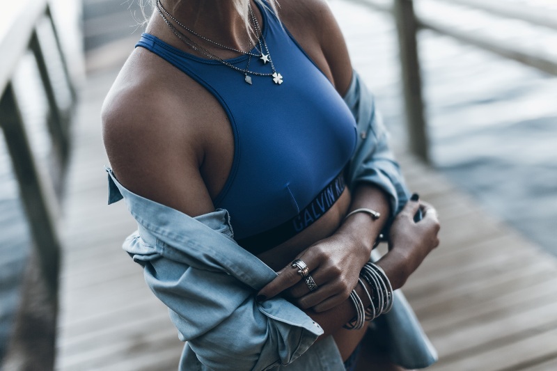 Active ladies who love sports and active games should purchase sports kits. In them, bodices and tops are more closed and provide excellent breast support. Such models will not crawl or move aside, so they can safely run, play and swim.