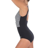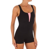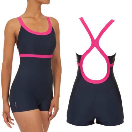 Decathlon produces very comfortable one-piece swimsuits in a sporty style. Such models are perfect for both normal and sport swimming in the pool. Especially original look products with shorts in the form of shorts.
