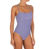 - Solid dark swimsuits in which the waist and chest are separated by a bright and contrasting line;