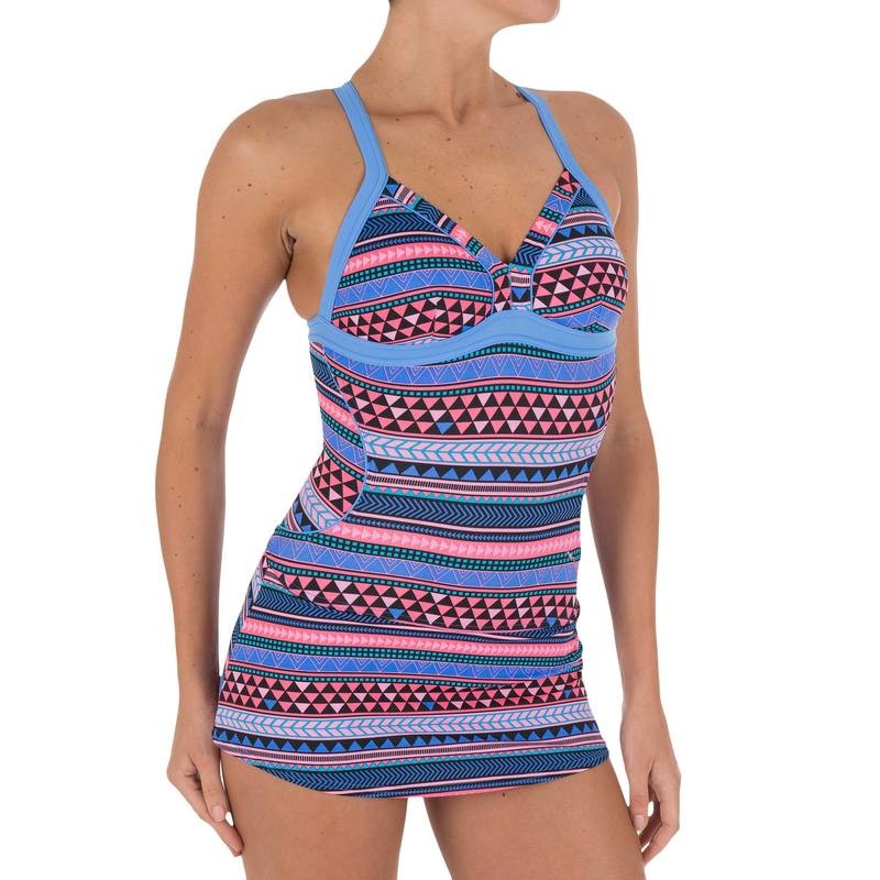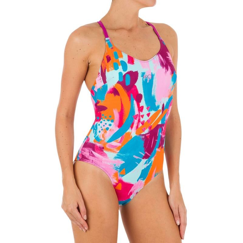Want to look bright and original? Then you should go to the pool, wearing a spectacular swimsuit that combines several colors. Decathlon offers fashionable women very rich products with multi-colored stripes.