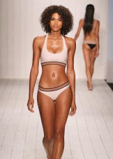 This is a universal form of a bathing suit. Straps can be sewn, like a bortsovka, may have different widths. Cut in the back in the form of a drop can have a different size. But a common feature of all the options is that the shoulders and shoulder blades remain free, so it is very convenient to move in such a bathing suit. In addition, this style is well supported by the chest.