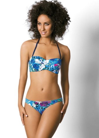The flower line is decorated with flowers, stones and rhinestones. Occasionally, the company's fashion designers adorn swimsuits with ruffles and metal rings. Much more often, bright monochromatic insertion in contrast to the print on the bodice and variegated ties on the monoton trunks become the decor.