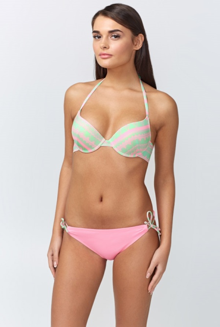 Among the styles of the brand places of honor occupied by models of bikini and halter. The bodice cups are most often triangular or push-up. This season they are at the peak of popularity.
