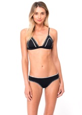 - Bikini - the most popular type of open swimsuit. Small panties and a bra with thin straps, which are tied around the neck - this is what a bikini looks like.