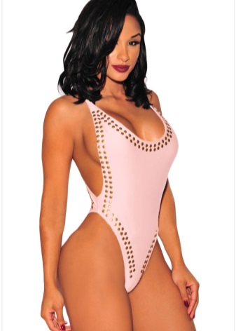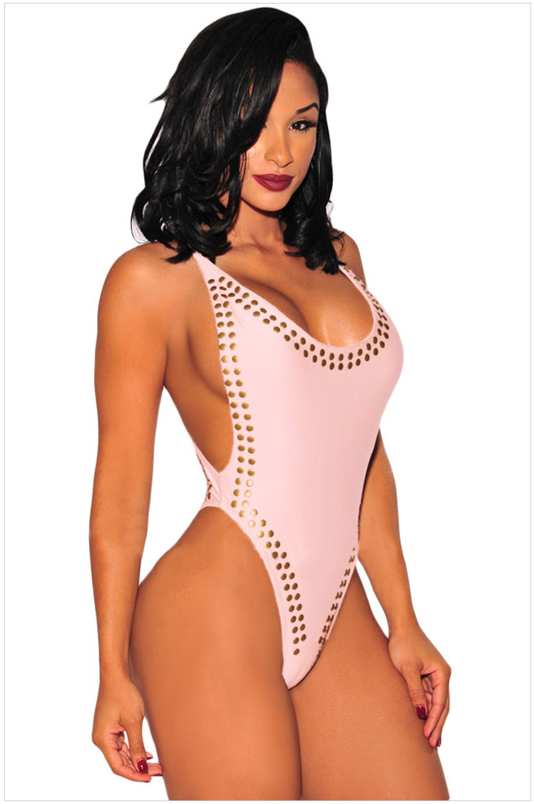 - The high-neck model has a very small cutout in the front. These swimsuits are great for sports.