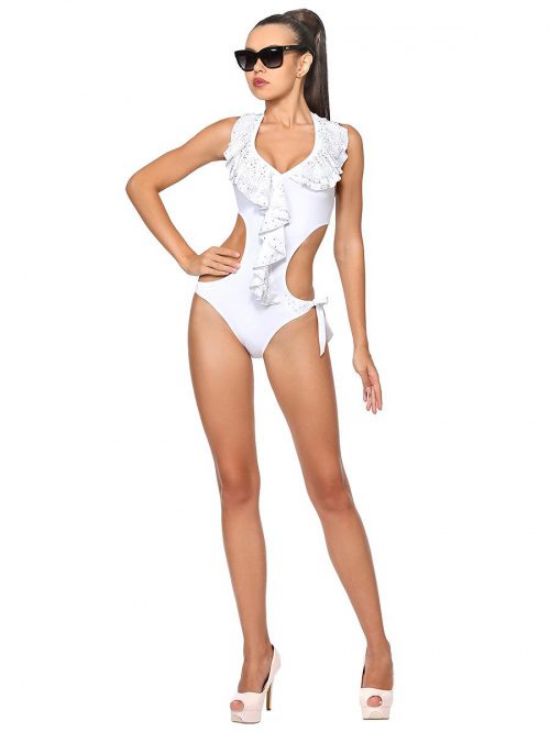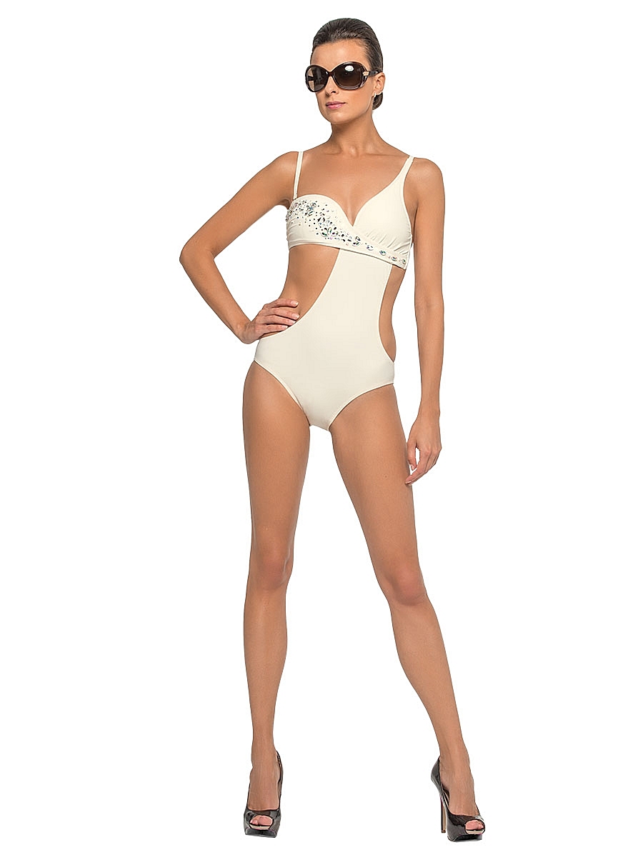 Monokini companies have an asymmetrical front and are decorated with shiny crystals.