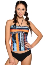 Elegant girls with a small chest size is perfect tankini with the effect of push-up. Cups can be supplemented with foam or gel liners. The shirt itself can be made in the style of a gang or in the form of a regular top.