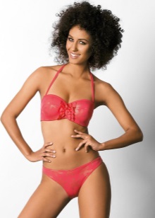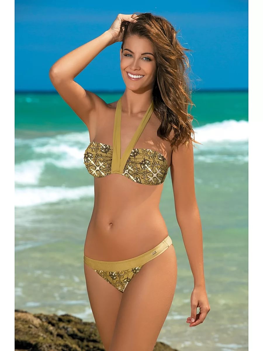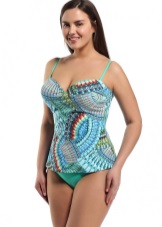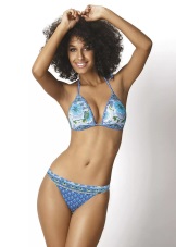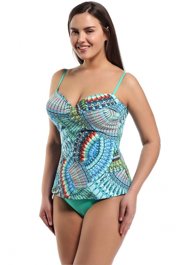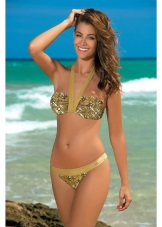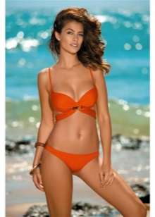 Separate swimsuits are not inferior to the one-piece models for elegance. Visually increase the breast and make the neckline more rounded and seductive will help molded cups with the effect of push-up. Panties may have a low or medium waist. Many models are decorated with drapes and decorative pendants.