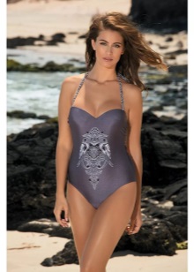 Special attention in the closed models is given to the neckline. As a rule, it is a deep, beautiful neckline, and breast support is provided through the use of molded cups with a push-up effect. Swimsuit complemented by thin removable straps or has one-piece stitched straps.