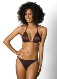Owners of small breasts perfectly fit model with a soft triangular cup. Such a swimsuit visually makes a small chest more lush and rounded. And additional volume will be given to it by removable correctors and a frame.