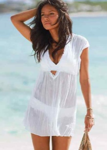 This practical and functional thing from the beach wardrobe can work wonders. Properly matched on the cape on a swimsuit can hide flaws and advantageously emphasize the merits of any silhouette. Choose the right model for women of fashion will not be difficult, because today designers represent a wide variety of models for every taste and style.