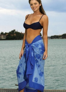 - One of the most common is the pareo. So called a long piece of fabric that is worn on the beach. The fantasy and ingenuity of fashionistas are so rich that today there are a large number of ways of tying pareos. From it you can build a skirt, top, dress and even shorts. Having such a stylish accessory in your wardrobe, you can appear on the beach every day in a new way.