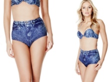 The famous brand from America Guess decided to surprise the ladies and recently released an original denim swimsuit. Panties with such a pattern are more like short jeans shorts. The lady in this interesting outfit will surely attract attention on the beach!