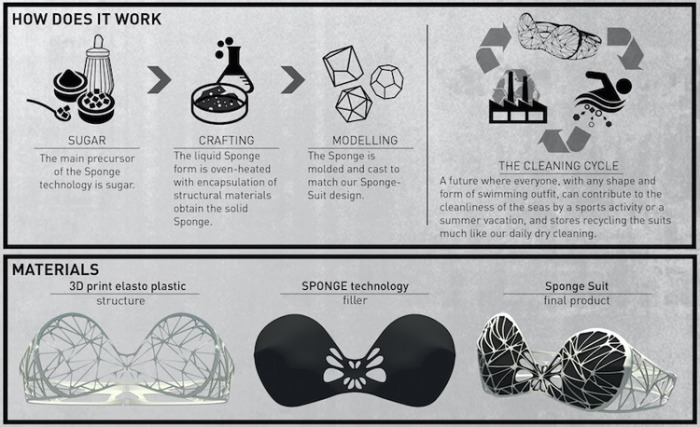 The brothers Mihri and Cengiz are professors of the University of California. They decided to draw public attention to the pollution of the waters of the oceans and developed a special swimsuit with a filter. The brothers created the main bodice layer from a special mesh material that perfectly repeats the shape of the female body.