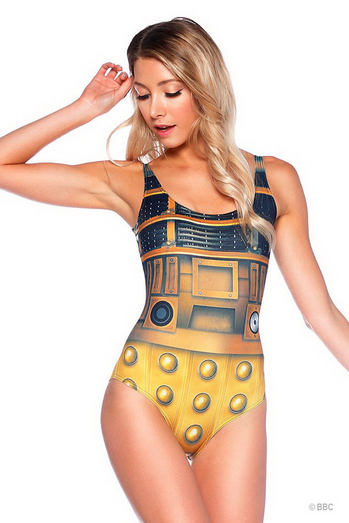 In 2015, the Australian brand Black Milk released very bright models of swimsuits and beach dresses in the style of the popular Doctor Who series. Original models are distinguished by bright colors and beautiful prints.