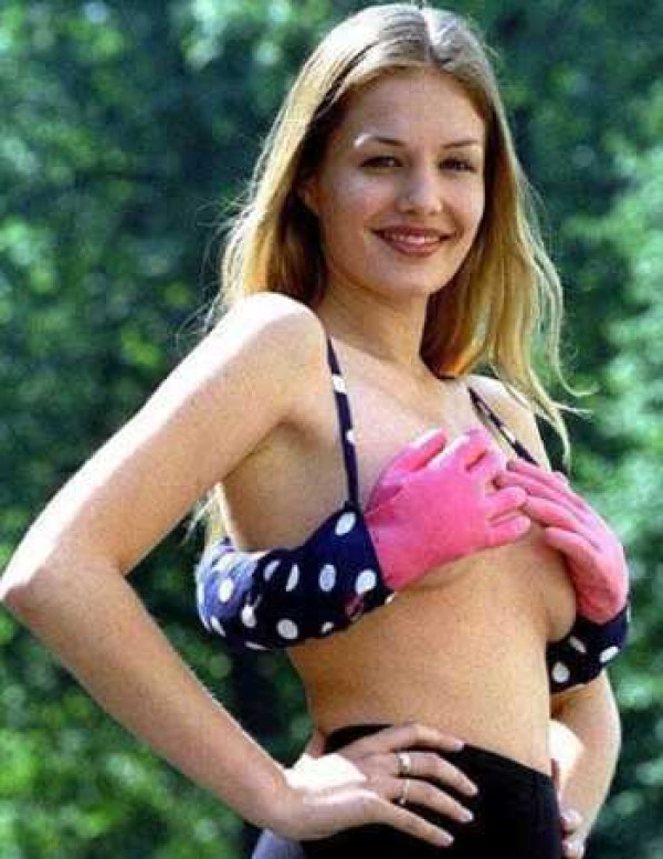 For girls with a sense of humor, funny swimsuits are made, in which the bra is made in the form of two hands, clasping the chest. This model not only improves the mood of others, but also provides the bust with excellent and soft support.