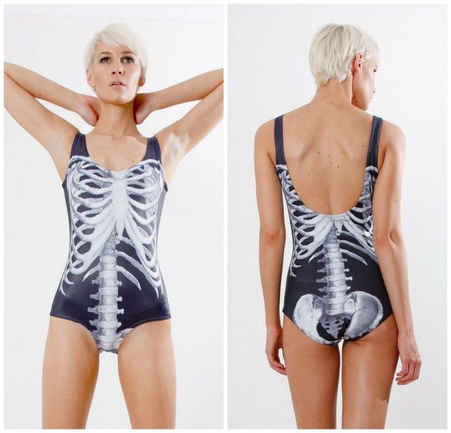 This model is hard to imagine, but the brand Black Milk Clothing still released it.This is a regular one-piece swimsuit with a print in the form of internal organs. In such a dress, the lady looks as if she was turned inside out. The Australian company produces no less bold products with a pattern in the form of muscles and a skeleton.