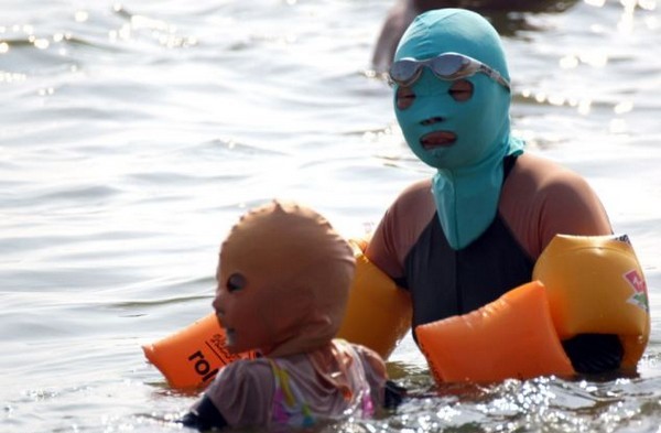 - To simplify the task in China, a swimsuit for the face was invented, which is a mask of elastic material that covers the entire face, neck and triangle of the chest.