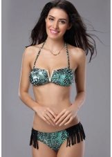 In addition to the original design and memorable prints, swimsuits are often decorated with metal rings of different sizes, fringe, brooches, beads, embroidered with sequins, etc.