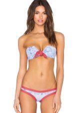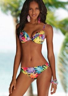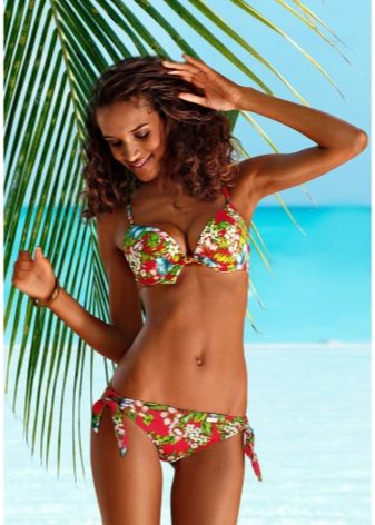 - Bikini. Universal model for a big and small bust. Due to the specific design, the bodice not only lifts the chest, but also reduces it to the center, forming a beautiful hollow.
